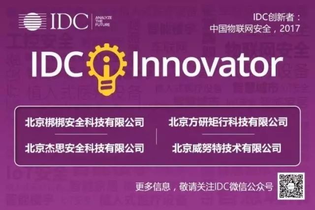 IDC表示,在中國市場目前有相當數量的新興公司專注于IoT安全。這些IoT安全相關的公司致力于最大程度的解決IoT環境及產品的安全問題。IDC從公司規模、產品技術,到行業和客戶,生態系統建設以及未來發展戰略等方面對IoT安全領域的新興公司進行了考察,最終選擇了北京方研矩行科技有限公司、北京梆梆安全科技有限公司、北京杰思安全科技有限公司、北京威努特技術有限公司四家廠商成為IDC物聯網安全創新者。《IDC創新者:中國物聯網安全,2017》報告介紹了這四家公司的產品和客戶案例,分析了其差異化特點以及需要面對的挑戰,幫助IT購買者選擇技術供應商時,發現最新的IT技術,并找到新產品的評估方法。