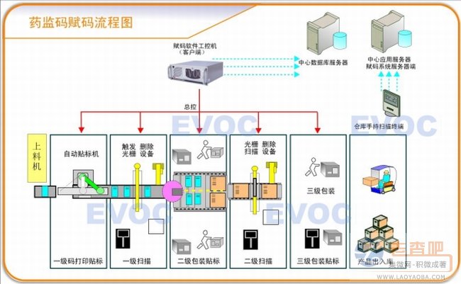 藥監碼硬件系統由服務器、打印PC、平面貼標機、現場工控機、藥監碼掃描器、條碼打印機等組成,此外還需要根據系統實施情況對現有設備進行改造。