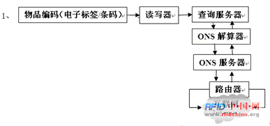 這個編碼既不是互聯網域名,也不是IP地址,僅從編碼無人能夠知曉其所代表的含義,要經過EPCglobal公司物品解析服務器(ONS)解析等7個步驟,在互聯網上找到其相應的信息服務器: