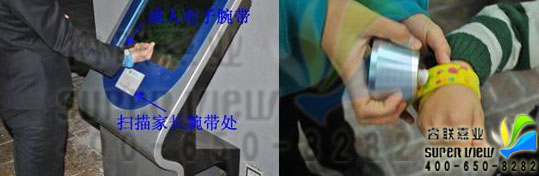 該系統中的人員定位功能是通過安裝在場館上的有源閱讀器讀取電子腕帶中的有源標簽來實現的。家長只需在場館內的任何一臺查詢機上掃描一下電子腕帶,便可實時查詢自己孩子的當前位置。該定位準確、方便,很受家長們的認可與表揚。