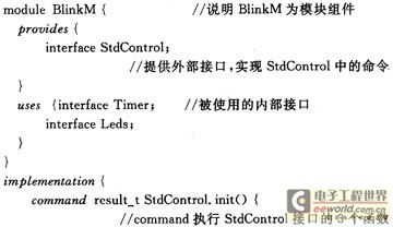 注:程序中斜體字表示nesC語法中所用到的關鍵字。