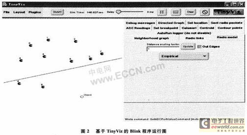 關于nesC應用程序的執行,在TinyOS上提供了一個可視化圖形仿真器’Tinyviz,觀測TinyOS應用程序具體功能的執行過程。以TinyOS系統自帶的app應用文件Blink程序執行過程為例,其他基于TinyOS開發的應用程序軟件調試、仿真均可用以下執行方法。