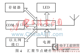 (5)LED燈用于顯示匯聚節點的運行狀態。