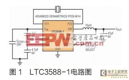 為了管理能量收集和能量向系統的釋放,LTC3588-1 壓電能量收集電源 (圖 1) 集成了一個低損耗內部橋式整流器和一個同步降壓型 DC/DC 轉換器。該裝置運用一種高效的能量收集算法以收集和存儲來自高阻抗壓電元件的能量,這些壓電元件可能具有大約幾十mA 的短路電流。