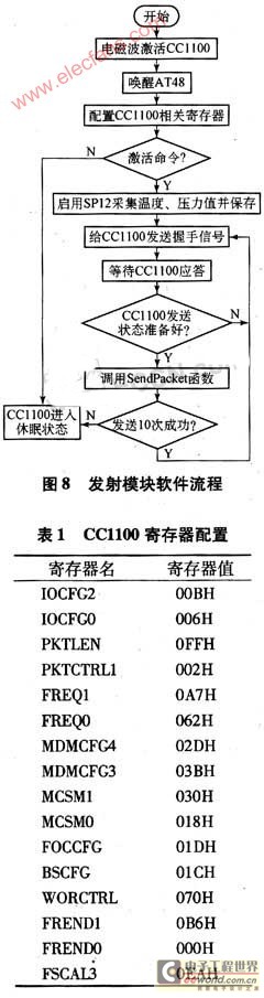 本文提出的基于ZigBee無線網絡技術和無線收發芯片CC1100的TPMS,充分利用無線收發芯片CC1100、AT48和傳感器SP12的特性,采用低功耗、低復雜度的ZigBee網絡技術作為通信協議,在電磁波激活模式下,發送數據包成功后CC1100可以進入深度休眠狀態,大大降低了模塊功耗。