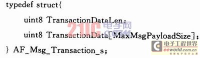 ZigBee支持KVP和MSG兩種數據幀格式,KVP適用于標準應用框架系統中簡單屬性值的傳輸,MSG則更適用于一般應用系統以及需要傳輸批量數據的場合。本系統采用MSG傳輸幀,其數據定義如下: