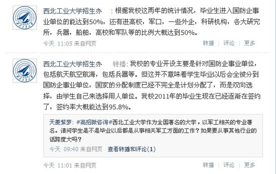 訪談結束的時候,焦玉蘭老師為廣大網友送上了祝福:“ 我真誠希望各位考生和家長對西北工業大學有一個非常非常向往的學校來付出一定的努力,西北工業大學也熱忱的歡迎各位考生踴躍的報考西北工業大學。”關于該校的一些具體信息,考生既可以致電該校的招生咨詢電話:029—88460206,或者登陸該校學校主頁查詢相關信息。同時,焦老師表示會通過該校招生辦的騰訊微博發布最新的招生動態并解答網友們的疑問。