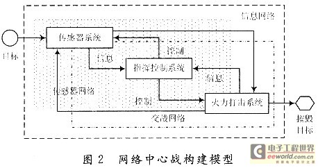 以往作戰行動主要是圍繞武器平臺(如坦克、軍艦、飛機等)進行的,各平臺自身的機動性有助于實施靈活的獨立作戰,但同時也限制了平臺問信息的交流與共享能力,影響整體作戰效能。網絡中心戰的構建模型使平臺與平臺之間的信息交流與共享成為可能,從而使戰場傳感器系統、指揮控制系統和火力打擊系統構成一個有機整體,實現真正意義上的聯合作戰,這種以網絡為核心和紐帶的網絡中心戰又可稱為基于網絡的戰爭。