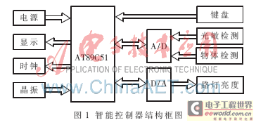 根據模擬路燈控制系統設計要求,智能控制器結構框圖如圖1所示。