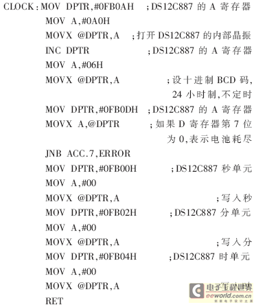 由DS12C887芯片設計的時鐘電路無需任何外圍電路和器件,具有良好的微機接口,并具有微功耗、外圍接口簡單、精度高、工作穩定可靠等優點,可廣泛用于各種需要較高精度的實時時鐘系統中。
