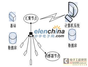 RFID 的一個發展趨勢是與網絡集成,目前RFID網絡已經開始逐步走向成熟。將傳感器節點集成到RFID系統中可以獲取更多所需的環境信息,并且可以擴大RFID系統的識別范圍。因此我們設計RFID傳感器網絡,網絡結構如圖3所示。