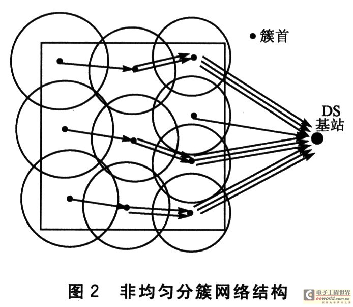 針對無線傳感器網絡能量受限的特點,對適應其特點的低功耗算法研究也一直繼續著。Heinzelman提出了LEACH(Low—Energy Adaptive Clustering Hierarchy,低能耗自適應分簇層次)算法。其核心思想是讓每個節點輪流擔當簇首,從而使得網絡中的能量消耗盡可能均勻,減少網絡失效時刻的能量浪費。LEACH算法只考慮了單跳模型,因此只適合于小型wSN網絡。參考文獻提出了M—LEACH(Multi—hop variant of LEACH,多跳LEACH)算法,簇內的節點不是以單跳的方式傳輸數據到簇首,而是通過簇內其他節點轉發。參考文獻提出了一個多跳簇首模型,采用從下到上的策略,逐層生成每一層的簇首,最終得到一個多層結構的WSN網絡。參考文獻采用基于代價的目標函數對傳感器網絡設計進行了分析,推導出單跳和多跳的適用范圍,最后提出一種單跳多跳混合的路由算法,以解決網絡中的“能量熱點”問題。本文在前人研究的基礎上提出一種適合無線傳感器網絡能量受限特點的低功耗路由算法。