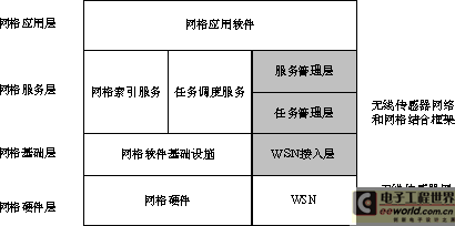 結合框架需要在不改變整體結構的前提下將無線傳感器網絡動態加入到網格中。它要能夠同時連接多個無線傳感器網絡,并可以容易地和網格的計算、存儲資源進行集成,這樣才可以使用戶透明地使用多個無線傳感器網絡。