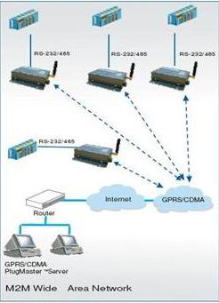 赫立訊科技所提供的WirelessPlug MA8-9 DTU產品是使用在機器對機器(Machine-to-Machine)應用的完整無線解決方案,包括MA8-9 DTU無線平臺及中心服務器的PlugMasterTM軟件,在硬件上MA8-9提供了工業標準的RS-232/RS-485接口,可以直接與專業工控采集設備、專業的偵測器連接。