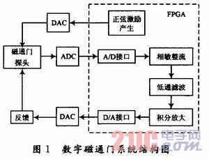傳統的磁通門信號處理電路采用模擬元器件,溫度性能嚴重地受到影響,且很難小型化,可移植性也很差。與之相比,現代數字磁通門系統,溫度性能穩定,體積小,可移植性強。根據應用的具體情況,可選的實現方式多樣,有單片機、可編程數字邏輯,或數字信號處理(DSP)芯片等。