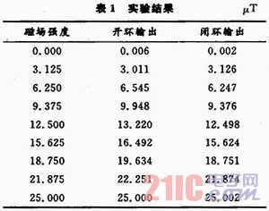 當系統開環時,隨著被測磁場的增大,系統輸出單調[FS:PAGE]增高,可以反映被測磁場的大小。輸出的非線性度為4.01%,最大誤差為0.867μT,受磁通門探頭鐵芯的非線性影響很大。閉環后,系統非線性度和誤差性能得到明顯改善,非線性度為0.012%,最大誤差為3nT。