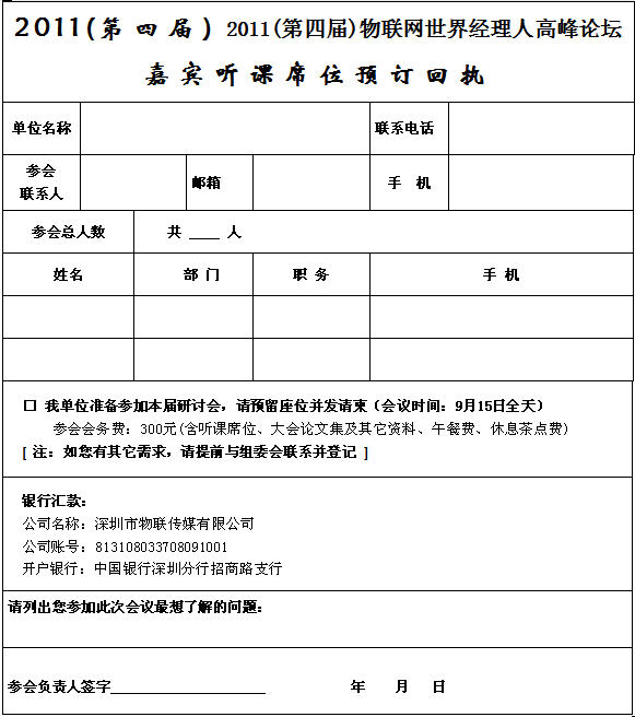 (此表復印有效,請(qing)將此表格電子郵件或傳真回(hui)組委會會務(wu)處,以(yi)便及時安(an)排席位,謝謝!)