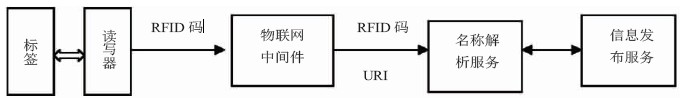 1、基于物聯網的質押品的動態信息的獲取的系統構架設計。利用物聯網技術實現信息獲取的一般過程為:在物品上貼上RFID標簽,讀寫設備通過讀取RFID標簽中的信息,尤其是ID信息,通過這個ID信息向物聯網名稱解析服務器請求以獲取該ID所對應的進一步詳細信息的統一資源標志符(URI),讀寫設備通過這個統一資源標志符進行進一步的信息獲取,實現信息的全面和透徹感知。