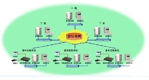 部隊倉庫及重要單位智能安防系統支持多級級聯管理,由基本監控單位和多層上級監管系統組成。基本監控單位為基礎系統,由數據采集及分析設備、管理服務器和監控終端組成,實現對倉庫及重要單位安防管理。軍、師(旅)等上級機關為監管系統,由管理服務器和監控終端組成,可對下級單位進行訪問、查詢。