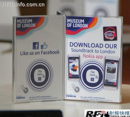 倫敦博物館已在兩處安裝NFC RFID標簽,給越來越多的NFC手機用戶提供額外的展品信息,同時可訪問社交網站和優惠信息。