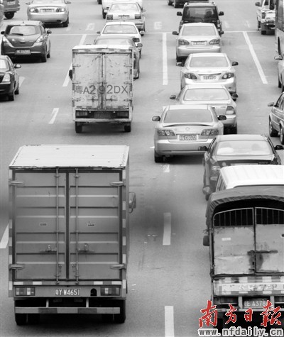 “據初步統計,在100萬輛汽車中,佛山本地發放營運證貨車約15萬輛,加上進出佛山的外地貨車,每天佛山路面有貨車約20萬輛次”,佛山市交通運輸局貨運科科長陳小東介紹,“貨車雖不多,但車體大、帶慢[FS:PAGE]了道路運轉率,也更易損壞城市道路路面。”