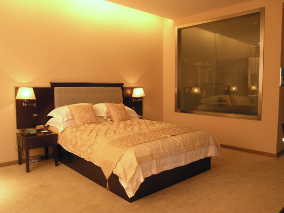 夜幕降臨,客(ke)人想休息了,也(ye)只需輕觸(chu)智(zhi)能(neng)面板上而“睡眠模式(shi)”,此時燈(deng)光(guang)、電視會自動(dong)全關(guan),同(tong)時地燈(deng)亮起,而空調(diao)也(ye)會在10分鐘后(hou)(hou)開(kai)啟(qi)到合適入(ru)睡的溫(wen)度,使客(ke)人安然入(ru)睡。半夜,當客(ke)人想起夜時,輕觸(chu)床(chuang)頭LED背光(guang)夜燈(deng)的開(kai)關(guan)此時同(tong)一側的床(chuang)頭燈(deng)慢慢亮起,再輕觸(chu)“起夜”場(chang)景鍵(jian)按鍵(jian),引道燈(deng)和衛生間的地燈(deng)即(ji)同(tong)時開(kai)啟(qi),如廁(ce)完(wan)后(hou)(hou)再輕觸(chu)按鍵(jian),燈(deng)光(guang)全暗美夢繼續。