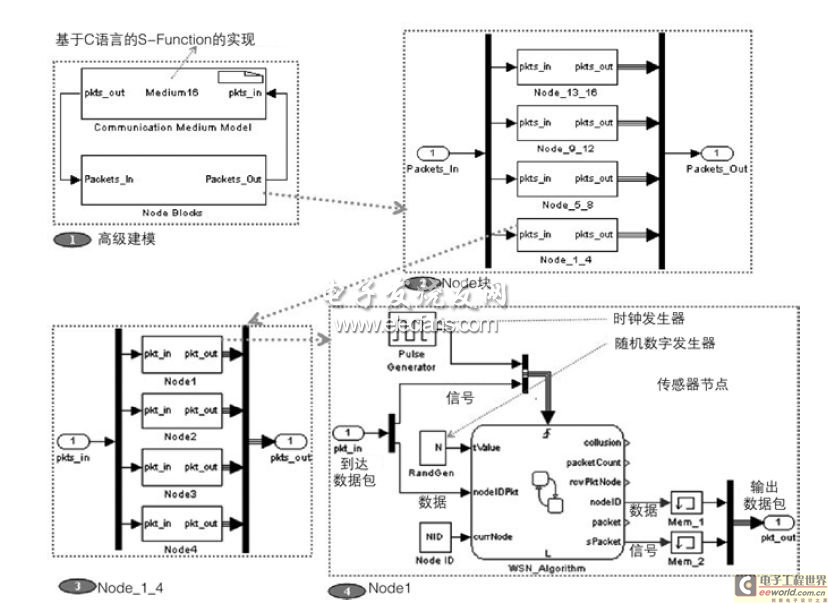The MathWorks公司構建了基于 Simulink的傳感器網絡模型作為動態系統的基時仿真器。模型具有兩個主要組件:無線信道模型(下文稱為Communication Medium)和Node塊。