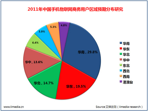 2011年中國手機物聯網商務用戶區域預期分布研究