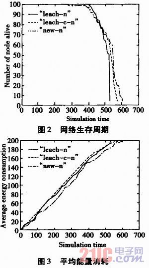 由圖3分析可知,改進型協議不僅將整個網絡各個節點的能耗進行了平均,而且讓網絡中的節點輪換休息,對節點數量較大、節點覆蓋密度大的無線傳感器網絡來說,節約了節點的能耗,在一定程度上延長了網絡的生存周期。