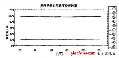 在寬溫度范圍內實測校準后的傳感器有效抑制了溫度變化對其產生的影響。如圖7所示的多只標準信號輸出的傳感器寬溫度校準數據曲線:不難看出,在寬溫度工作環境下采用此法校準的傳感器的讀出溫度誤差約為1%一2%FS,達到寬溫度的高精度測量要求,且通過多通道的通訊接口進行校準的方法與批量制造技術兼容,實現制造車用傳感器的高性價比的要求。