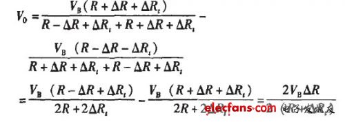 其輸出電壓表示為vo=KAR/R(Rl=如=R3=R4,△R1=△R3=△R2=△R4)。