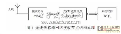 在無線傳感器網絡中的節點通常是一個微型的嵌入式系統,對采集數據、接收數據、處理數據、發送數據等的功能要求各有兼顧,其處理能力、存儲能力和通信能力都是對采集的數據進行管理和協同工作,因此傳感器網絡節點的軟硬件技術是傳感器網絡研究的重點。本文主要是對無線傳感器網絡節點數據的短距離接收進行設計探討。