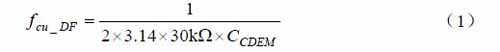 解調器的輸出信號,經數字濾波器濾波后送到數字信號處理電路,數字濾波器的通帶與數據信號的特性相匹配。數字濾波器由1階高通和3 階低通濾波器組成。高通濾波器的截止頻率fcu _ DF 由公式(1)決定。低通濾波器的截止頻率由所選波特率范圍(BR-Range)決定,BR-Range 在OPMODE 寄存器中設定,BR-Range 的設置必須與波特率相適應。