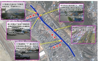 廣深公路(107國道)興圍至黃田段白天經常發生擁堵,一方面是車流量過大,另一方面也與路口間距過大有關。