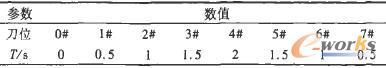 系統工作時,圓盤刀庫轉速為15r/min,RFID。識別刀具標簽時間為0. 25s。系統掃描識別一圓周總時間為6s。接著系統接受需查詢的刀具號對目標刀具定位,各刀具所需定位時間T如表2所示,假設RFID在識別起始點(0號刀位),刀具識別定位的平均時間為1s。
