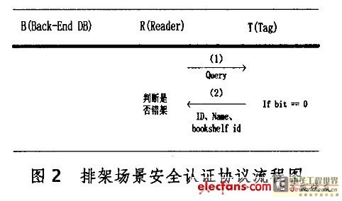 由于排架工作發生在圖書館預覽室內部,有理由假設此時的通信是安全的,因此可以設計不需保密鑒別的認證協議,這樣有利于提高通信效率。協議的執行過程如圖2所示。