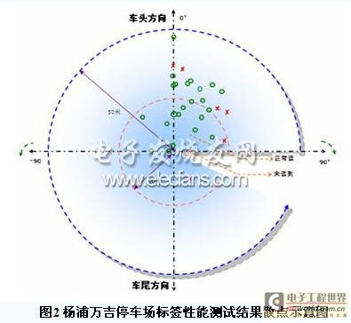 1)閱讀器讀卡性能:以車身為軸,車頭方向為正方向,其左右45度且距車頭30m以內的扇形區域內的讀卡成功率較高;上述情況下,讀卡測試成功率是100%。在車輛的側后方,讀卡成功率較低。