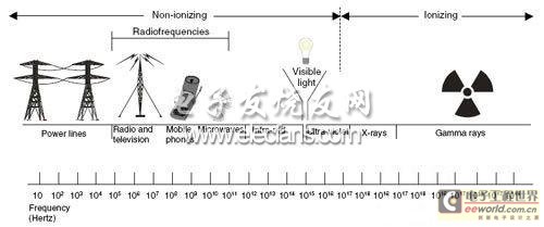 圖3 電磁輻射對人體影響研究的頻率范圍(注:引用圖)
