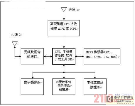 無線數據傳輸接口,包括GSM/GPRS、WiF[FS:PAGE]i、藍牙和RFID:無線數據接口的主要目的是接入互聯網,檢索當前位置目標的在線數據庫,在等待GPS定位或沒有GPS信號時提供簡要的定位信息。如果建筑物內預裝了發射器,其它的近距離無線連接如WLAN、藍牙和RFID也可以提供精度適當的室內定位信息。