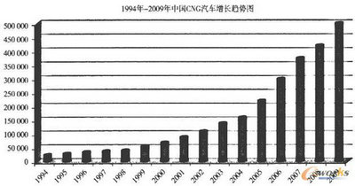 圖 1994年-2009年中國CNG汽車增長趨勢圖