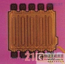 電容式壓力傳感器利用MEMS技術在硅片上制造出橫隔柵狀,上下二根橫隔柵成為一組電容式壓力傳感器,上橫隔柵受壓力作用向下位移,改變了上下二根橫隔柵的間距,也就改變了板間電容量的大小,即△壓力=△電容量(圖5)。電容式壓力傳感器實物如圖6。