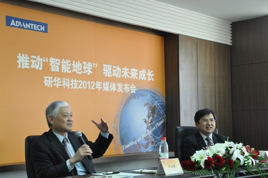 北京,3月27日,2012 — 全球產業計算機(IPC)與自動化設備領導廠商研華科技在京召開【推動“智能地球” 驅動未來成長——研華科技2012年媒體發布會】。此次發布會有多家來自經管、物聯網、自動化、電子、測控等領域,以及電力、太陽能光伏、風能、交通等行業的媒體出席。研華科技總經理何春盛先生、工業自動化事業群中國區總經理蔡奇男先生共同出席發布會并發表重要講話。