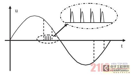 PLCBUS 技術采用Pulse Position Modulation(PPM) 脈沖相位調制法。它是利用電力線的正弦波作為同步信號,在四個固定的時序中發送瞬間電脈沖來傳遞信號的。每半個50Hz 的正弦波周期可以傳遞一個PLCBUS 脈沖信號,PLCBUS 脈沖信號出現在半個正弦周期里的4 個固定位置中的一個位置。