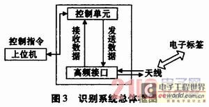 在設計系統時應該先確定ETC系統中射頻識別的工作頻率。5.8 GHz的工作頻率是目前的主流頻率,很有可能成為國際標準頻率。然而由于現在國內市場上還沒有成型的5.8 GHz射頻模塊,故本文的射頻識別系統擬選用915MHz的射頻模塊進行實驗研究,系統的總體框圖如圖3所示。