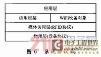 通過本系統的應用分析,為了實現系統的可擴展性,引入WiFi和RFID。在系統通信協議中省略了安全機制,AMR傳感器節點設置為RFID標簽形式,對停車場內的AMR傳感器節點統一編惟一的ID號,也對RFID讀寫器進行編號。AMR傳感器節點通過與RFID讀寫器進行通信并入WiFi網絡。系統的協議棧如圖6所示。