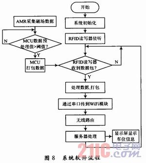 檢測系統程序設計使用模塊化程序設計方法,由傳感器節點和RFID閱讀器組成。系統軟件流程如圖8所示。