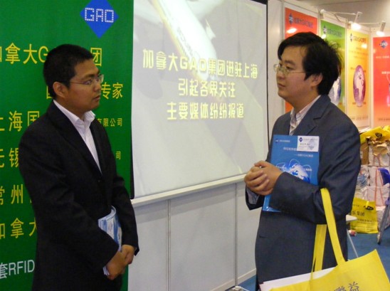 展廳入口最顯眼處,常州高特展臺以其獨特亮麗的設計及超大面積脫穎而出,展臺前參觀者絡繹不絕。作為國際物聯網巨頭GAO集團的分部——常州高特多元化、多角度全方位展示了公司最新技術及先進的智能化解決方案,特別是智能交通管理、RFID資產管理、RFID牧場管理、醫療管理等智能化系統引起參觀者的廣泛關注 和好評,并受到中國信息界雜志社物聯網專刊記者的特約采訪。