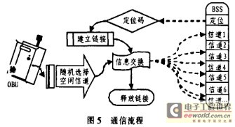 第2步:信息交換本設計采用探測射頻信號強度大小的方法來確定OBU是否進入服務區,經探測信號強度大于最大信號的1/2時,收發雙方實現無線握手,此時認為OBU已經進入服務區。在此階段中,所有幀必須帶有OBU的私有鏈路標識,并實施差錯控制。對于OBU上下行的判斷可以通過ID號來判斷是否屬于同一個系統,不是同一個系統的ID號的OBU從記錄中自動刪除。OBU上報信息時采用跳頻機制,隨機選擇所處服務區的某一固定信道進行握手通信,防止發生信道堵塞。