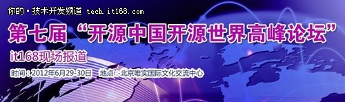2012年6月29日,第七屆"開源中國開源世界高峰論壇"在北京唯實國際文化交流中心召開,開啟為期兩天的日程。這是一次全球盛大的、最高水平的開源學術研討會,反映中國開源技術和產業的崛起。這次會議研討的主題是移動互聯終端設備(智能手機、平板電腦、互聯電視、車載信息系統等)的發展、應用和產業化以及市場問題,移動互聯網與云計算、物聯網(重點研討有關開放、互聯和節能的技術發展方向)的發展及應用問題。
