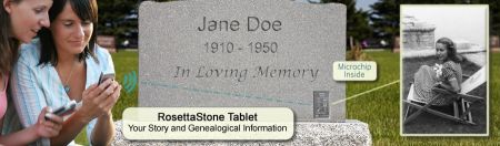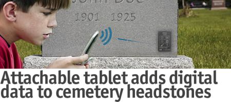 一家美國公司將部分信用卡已經應用的射頻識別技術(RFID)安置到墓碑上,讓墓碑也能帶上電子標簽。普通的墓碑只能顯示死者名諱、出生死亡日期或是墓志銘和親屬姓名,而這款高科技墓碑卻能借由鑲嵌在上面的科技石板儲存大量信息。